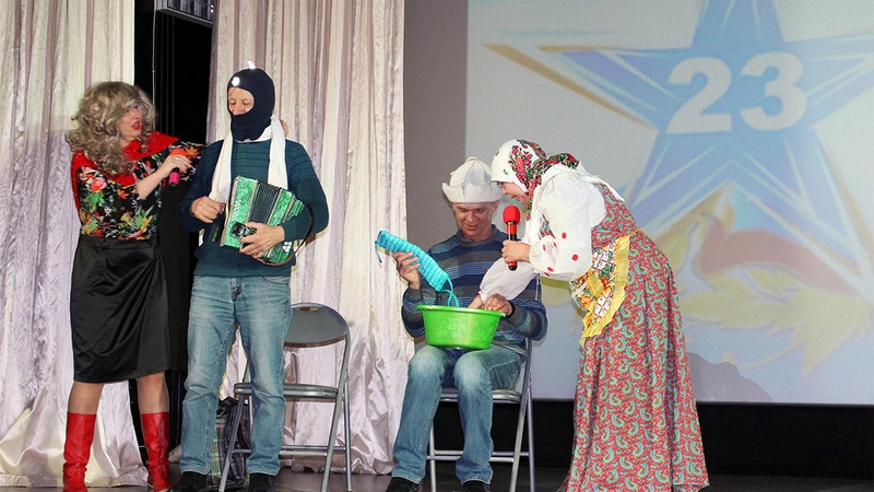 Концерт в День защитника Отечества подарил долинцам творческий коллектив «Бенефис» Центрального дома культуры. Зрителей ждали музыкальные поздравления от звезд российской эстрады, театрализованное представление и много-много юмора.