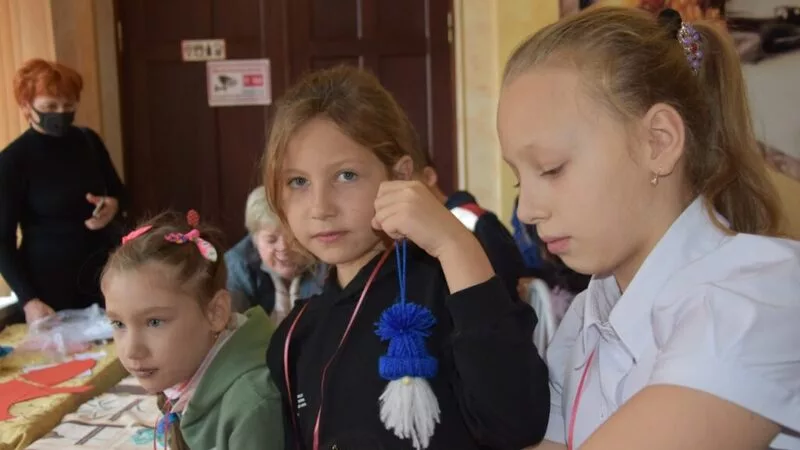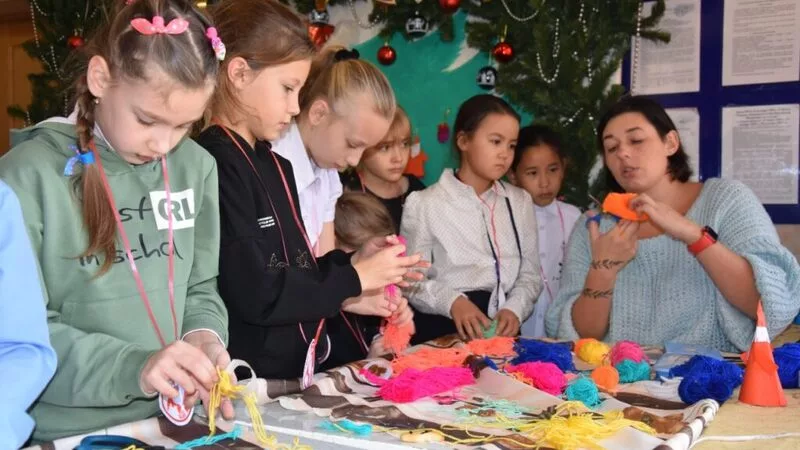– Из разноцветных ниток с помощью ножниц и полоски бумаги делаем голову Деда Мороза: шапку с бубоном, бороду. Крепим бусину-нос – готово! Все просто, но требует сосредоточенности. Ребята стараются, у них все получается. Многие делают по две игрушки: не идут танцевать с Дедом Морозом и Снегурочкой, а остаются здесь, – улыбается ведущая мастер-класса Ева Ремезова.