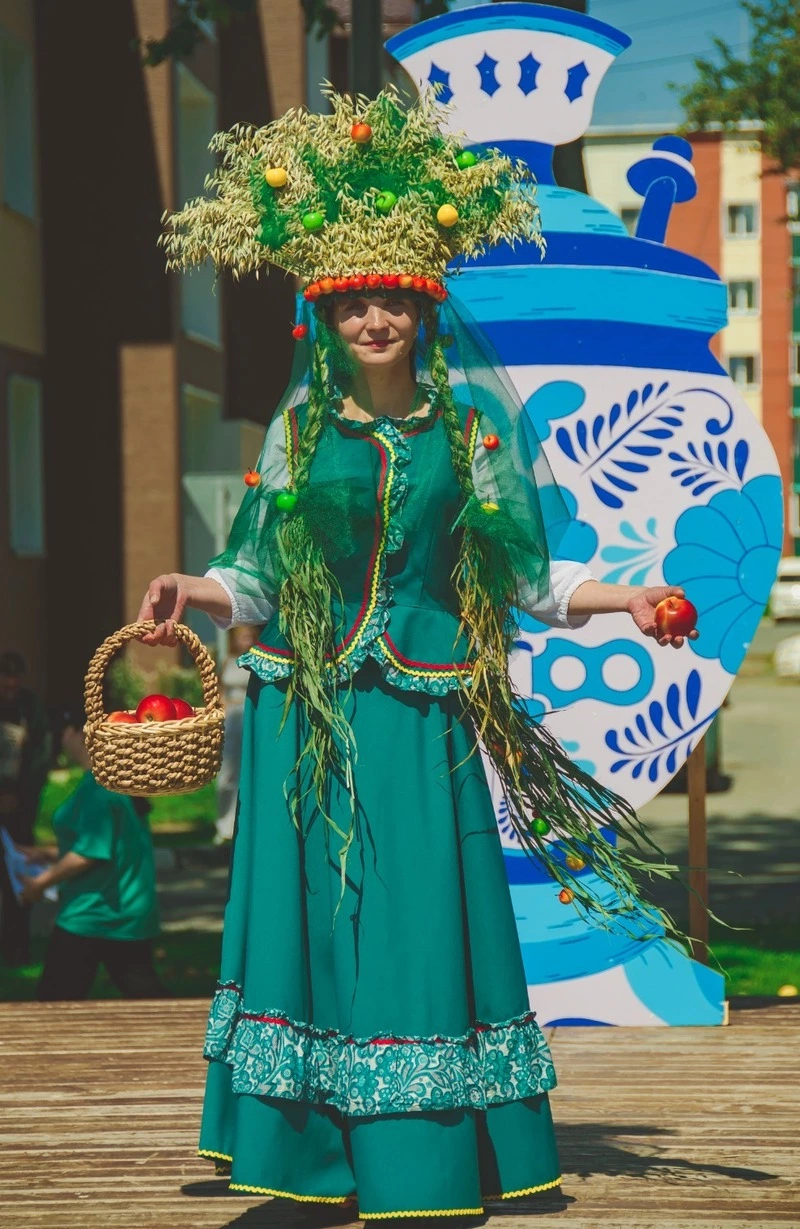 Фестиваль продолжили хозяюшки Яблочного Спаса – Лето и Осень, платья которых соответственно украшали зеленые или желтые, оранжевые лисья и ветки. Они радушно приветствовали гостей, пожелали всем мира, счастья и тепла, вспомнили историю праздника и поведали о народной примете, связанной с этим днем: лето заканчивается, и на пороге уже осень, которая к тому же отмечает свои именины. С древних времен у славян их называют Осенины.