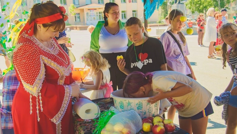 Параллельно народные гуляния продолжались на других площадках, оформленных в тематике Яблочного Спаса. Для детей проводили веселые конкурсы и игры, загадывали загадки. Каждый ребенок мог найти себе развлечение. Работало «Русское подворье», где любой желающий мог заработать жетоны на площадках «Яблочные забавы» и обменять их на вкуснейшую выпечку из яблок, приготовленную конкурсантами.