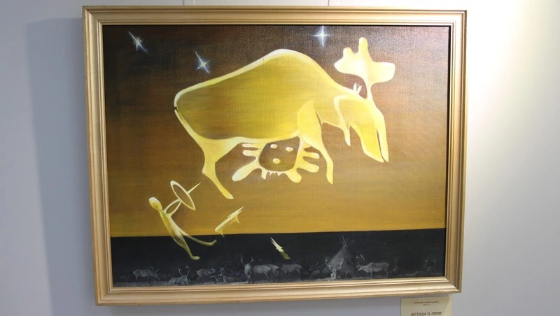 Первые работы обращены к мифологии и древним представлениям о роли мужчины в обществе. Так, в картине «Легенда о Мини» Галины Окоёмовой изображён образ героя-охотника – символ силы, выносливости и связи человека с природой. Через подобные сюжеты раскрывается этап становления мужской роли в племени и семье, отражённый в народных преданиях.