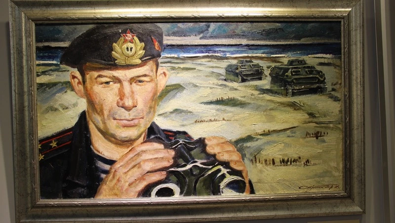 Отдельный раздел выставки посвящён теме героизма и служения. Здесь представлены изображения участников Великой Отечественной войны и представителей военных профессий. Среди них – групповой портрет братьев Куликовых в работе Василия Куликова «Отцы и деды» и «Портрет полковника морской пехоты» Петра Стронского. Художники не только передают внешнее сходство, но и раскрывают внутреннюю силу, нравственные качества и личную историю своих героев.