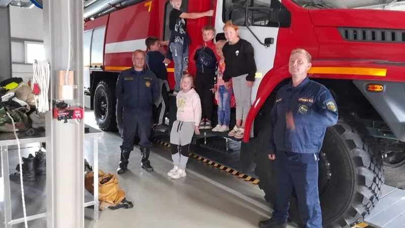 Юные жители Углезаводска побывали на экскурсии в пожарной части, отвечающей за безопасность села.