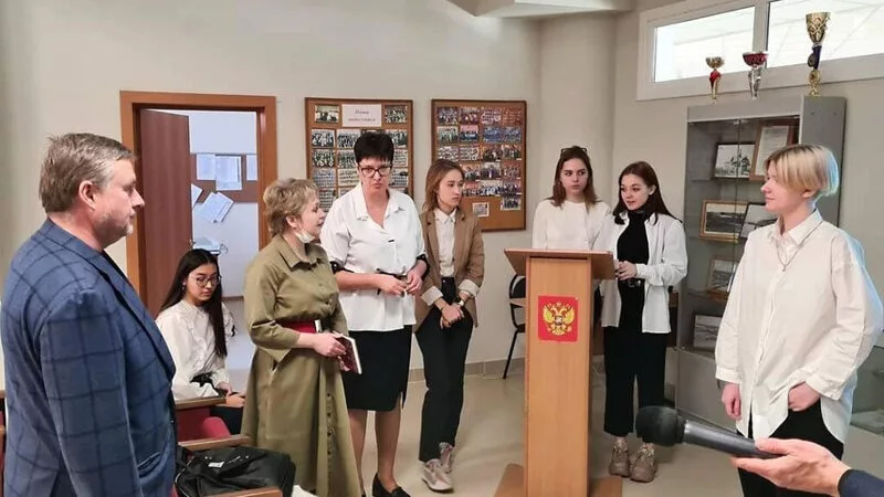 В школьном музее Георгия Карлова встречают ученицы, готовившие презентацию о Сталинградской битве. Оборудование в кабинете капризничает, поэтому показать продукт работы не получается. А вот разговор завязывается легко: депутат вспоминает о своем образовании и общественной работе.