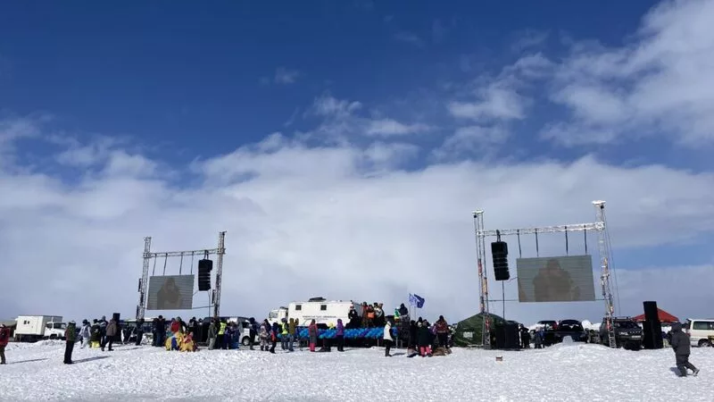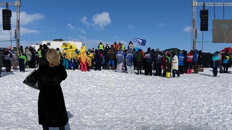 Погода удалась, лишь иногда небо закрывали низкие облака. Но остальное время все блестело под солнцем зимнего Сахалина. Вид нашей Найбы великолепен, как всегда, — садись и пиши маслом бело-голубые горы и россыпь ярких костюмов участников и гостей соревнований.