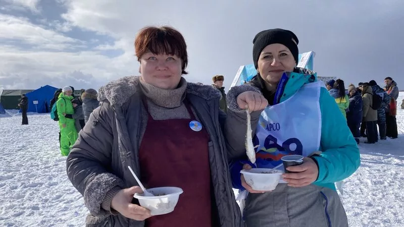 Юбилейный фестиваль стал рекордным по количеству гостей и участников. Организаторы утверждают, что в этот день на Найбе собралось больше двух тысяч человек. Охотно верю: мы с директором газеты тащили конкурсные сковородки от парковки до праздничных площадок добрых полчаса. Да и на льду местами было тесно от рыболовов и зевак. В общем, народу было много.