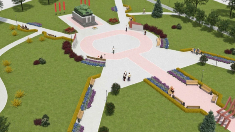 По первому проекту планируется отремонтировать входную группу, обустроить зоны отдыха и центральную аллею, ведущую к памятнику. У танка Т-134 установят мемориальные доски, а у его основания - контейнер с капсулой времени - посланием в будущее. Сквер Славы дополнительно озеленят деревьями благородных пород.