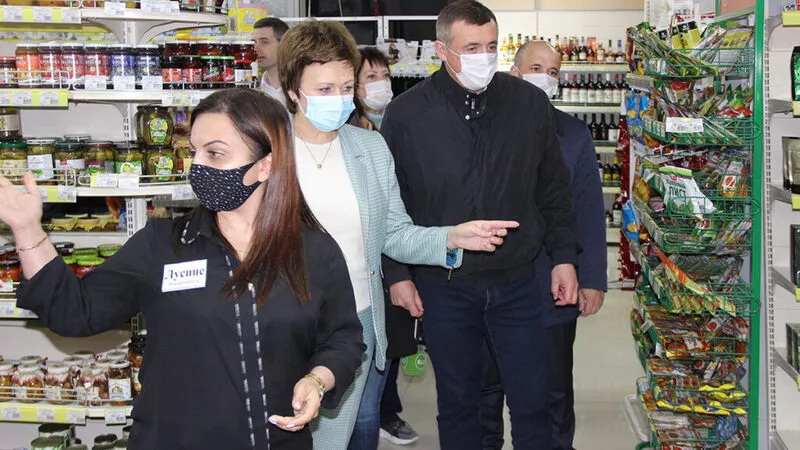 Затем губернатор вместе со своими помощниками посетил социальный магазин, расположенный в торговом центре «Союз». Они осмотрели ассортимент товаров и цены на ключевые продукты, пообщались с персоналом и покупателями.