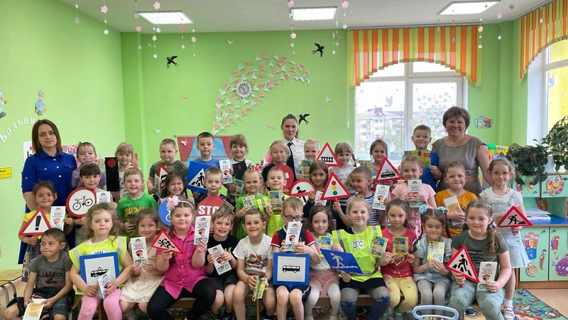 Автоинспектор рассказала воспитанникам детсада «Улыбка» о правилах перехода дороги на светофоре