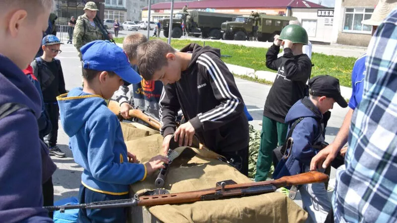 На административной площади развернулась выставка стрелкового оружия. Были представлены винтовки и пушка времен Великой Отечественной войны. Начались показательные выступления. Курсанты «Десантника», юноши и девушки, продемонстрировали блок приемов рукопашного боя, элементы строевой подготовки, владение шашкой, ножом, винтовкой и саперными лопатами. Все движения точные, быстрые, за каждым – часы упорных тренировок.