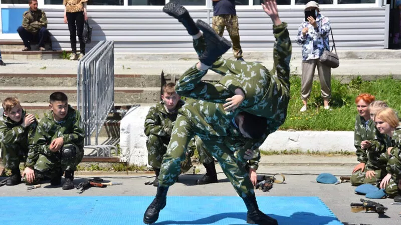 – Во дают, какие ребята молодцы, столько всего умеют! Вот это я понимаю– будущие воины,– восхищается пенсионерка Нина Денисова.– Вы посмотрите, какая у них дисциплина, форма, а девчонки как дерутся! Вот чем молодежь занимать надо. Пусть еще к нам в гости приезжают.