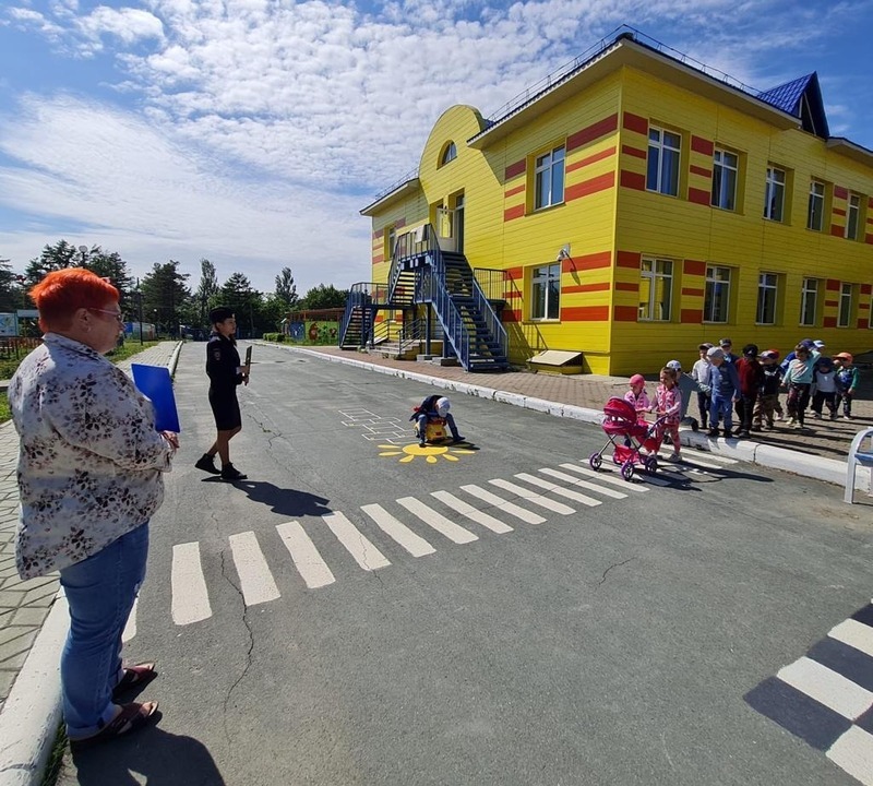Инспектор по пропаганде БДД рассказала дошкольникам, кто такие пешеходы и водители, как правильно передвигаться по тротуару, где можно играть в подвижные игры, что такое светофор и какие бывают дорожные знаки. После теории юные пешеходы приступили к наглядному изучению Правил дорожного движения с использованием мобильного автогородка.