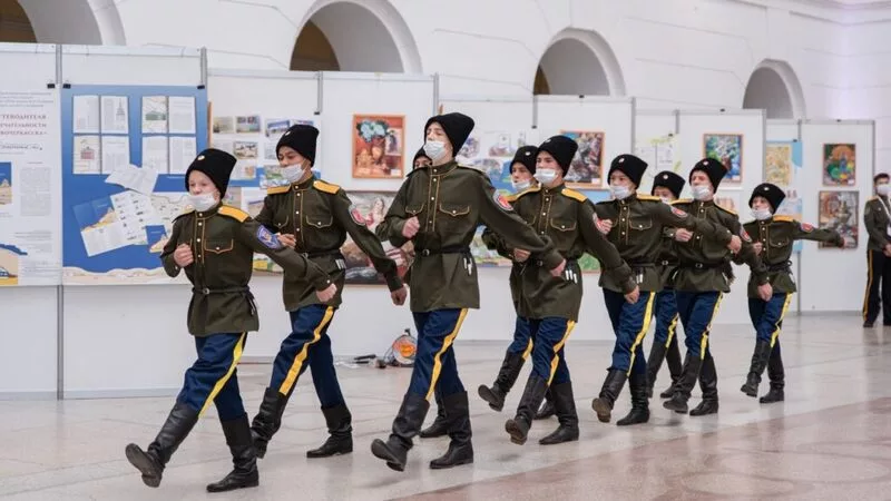 Этот день выдался очень напряженным: с утра отбегали кросс, выполнили другие испытания триатлона, отыграли три футбольных матча. Тут же сняли футболки – надели гимнастерки, вышли на сцену представлять выставку о казаках – героях Великой Отечественной войны: мы сделали стенд, и ребята по памяти рассказывали истории героев с датами, номерами частей и т. д., что высоко оценили судьи – за это испытание у нас первое место. Потом был исторический квест, где у нас четвертый результат.