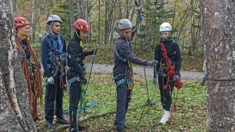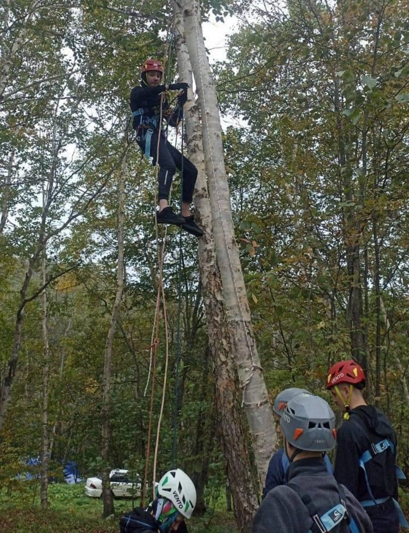 Одно из самых трудных испытаний – маршрут выживания. Он включал ориентирование, подъём по скалодрому, спуск по тросу и работу на лесной переправе.