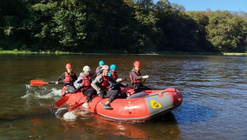 Работа в акватории делилась на четыре подэтапа: греблю на рафтах, плавание на 50 метров, эстафету и спасение утопающего.