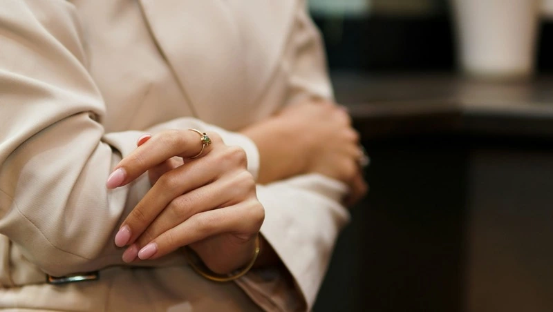 Привычный нюд можно также разбавить легким дизайном, украсив ногтевую пластину крошечными стразами, жемчужинами, сухоцветами, наклейкой или микро-узором. Легкий, ассиметричный акцент на ногтях сделает покрытие более интересным, а сам маникюр вам не надоест.