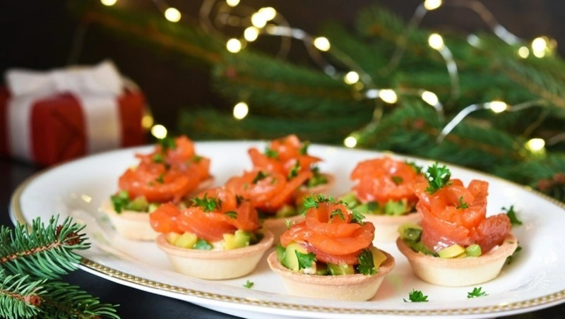 Нарежьте копченую рыбу и авокадо кубиками. Смешайте сливочный сыр с лимонным соком, солью и перцем. Наполните тарталетки смесью из сыра и рыбы, сверху выложите авокадо. Украсьте свежим укропом или петрушкой.