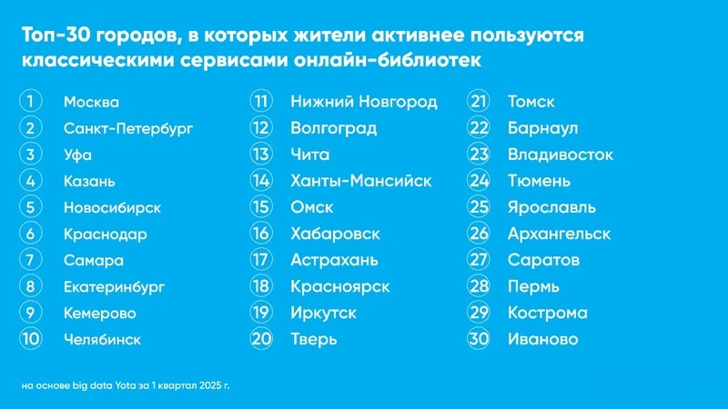 Россияне все активнее читают произведения начинающих авторов на самиздат-площадках — число пользователей таких сервисов за год выросло на 37%, а время, проведенное на этих ресурсах, увеличилось на 24%. При этом на фоне бурного роста самиздат-платформ классические сервисы электронных библиотек показывают более скромную динамику. К такому выводу пришли аналитики Yota на основе обезличенных данных за первый квартал 2024 и 2025 годов.