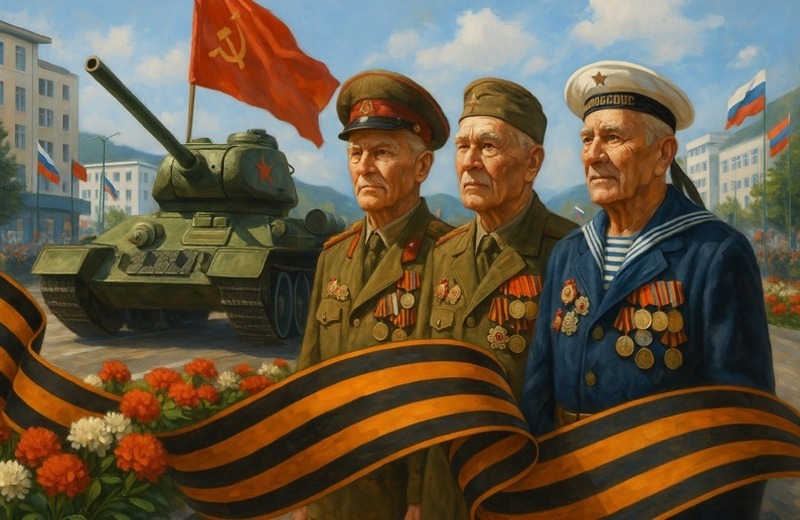 В 2025 году в России отмечают 80-летие Великой Победы. Каждый год 9 мая по всей стране проходят мероприятия, посвященные памяти тех, кто героически сражался ради мирного неба над головой. По случаю этого важного события газета «Долинская правда» публикует картинки и открытки, созданные нейросетями.