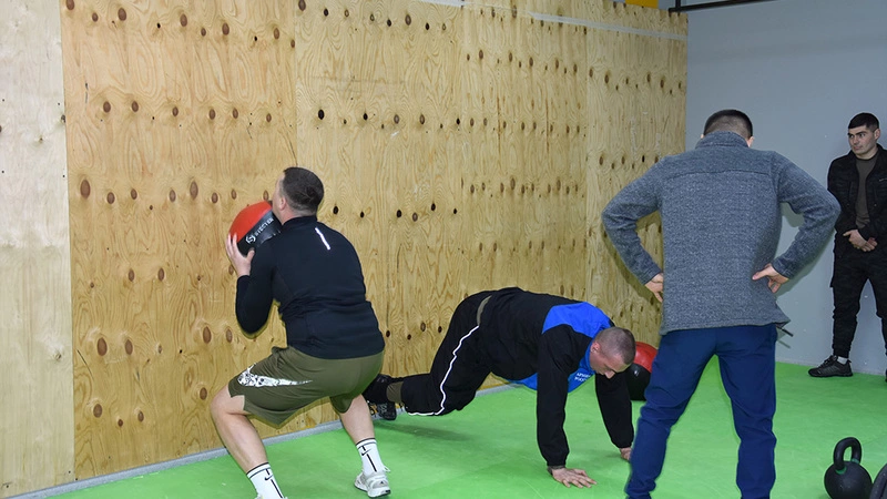 Открыл мероприятие главный судья, мастер спорта по становой тягеСергей Вовчинский. Он проинформировал участников и гостей о правилах соревнований. Они проходили в два этапа: групповой и личный. Пары распределялись путем жеребьевки. Каждая выполняла комплекс упражнений (махи 24-килограммовой гирей (50 раз), броски девятикилограммового мяча в присяде 20 раз, прыжки на тумбу (40 раз), поднимание штанги (60 кг) и др.). Сильнейшие выявлялись по минимальному времени. В полуфинале они также на скорость делали берпи – сочетание прыжка, «планки» и отжимания. Победители определялись по максимальному результату.