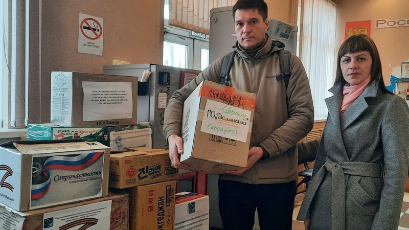 Сегодня коробки с тёплыми вещами, нательным бельём, продуктами питания и средствами личной гигиены доставили сотрудники Комитета по управлению муниципальной собственностью, аппрарат Собрания МО ГО "Долинский", МКУ "Управление делами".