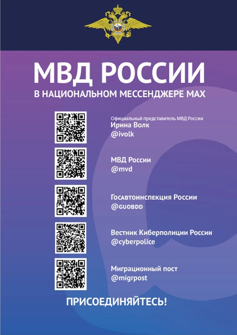 Официальные каналы МВД России в мессенджере MAX
